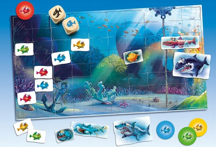Szybka gra gwarantująca niesamowite emocjeTwoim celem jest pomóc małym rybkom umknąć złym drapieżnikom. Wygrywasz, jeśli jako pierwszy dotrzesz jedną ze swoich rybek na rafę lub jako jedyny pozostaniesz w ękna szata graficznaPiękne grafiki przyciągną do stołu graczy w każdym wieku i pozwolą Wam na moment przenieść się do niesamowitej podwodnej zasady i stopniowalne poziomy trudnościZasady Rekina są proste i szybkie do wytłumaczenia idealnie skrojone na potrzeby młodego odbiorcy. Poziom trudności gry możecie też dowolnie zwiększać dobierając większe drapieżniki lub decydując się na konfrontację aż z czterema grubymi gra gwarantująca niesamowite emocjeCzy uda mi się przemknąć i jeszcze uratować tę rybkę? Czy przeciwnik wykorzysta okazję i skieruje rekina właśnie w moją stronę? Za którą rybką można by się schować, by potem jednym susem ją wyprzedzić i dopłynąć jako pierwszy na rafę? Przed Wami pełna emocji i nagłych zwrotów akcji podróż przez ędzynarodowe uznanieJuż teraz gra podbija serca jury oraz uczestników UK Games Expo i otrzymuje nagrodę Young Einsteins Gold Award 2017!