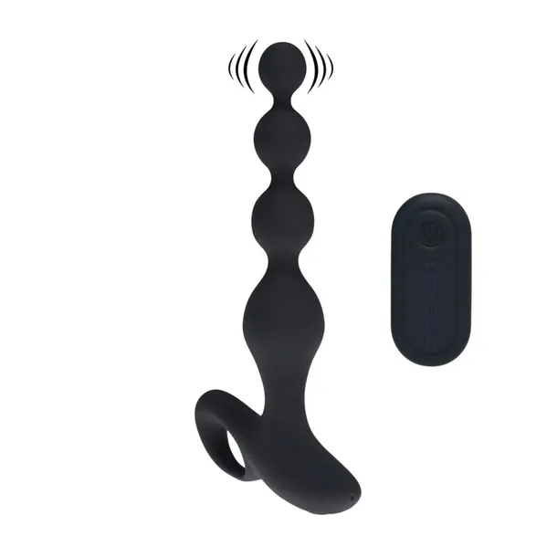 Remote Control Beaded Vibrating Silicone Anal Plug - Black