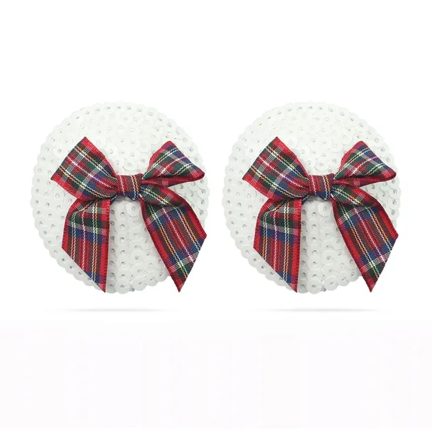 Cekinowe okrągłe nakładki na sutki z kokardką.