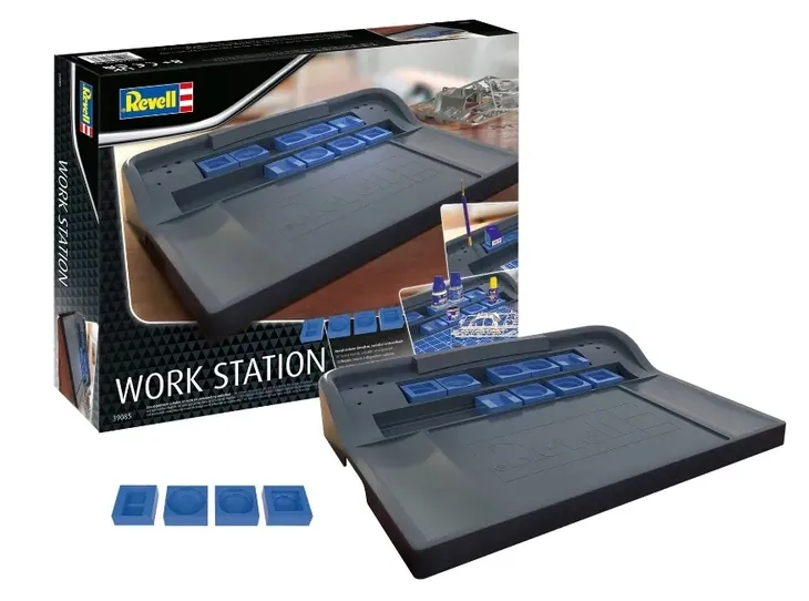 Stacja robocza Revell to idealne miejsce pracy do wszelkich prac modelarskich. Z praktycznymi schowkami i zmiennymi wkładkami na narzędzia, pędzelki i akcesoria oraz odpowiednie wgłębienie na matę do cięcia Revell (39056). Stacja robocza ma uchwyt na różne pędzle, dzięki czemu można je bezpiecznie przechowywać i trzymać w zasięgu ręki. Posiada 4 różne wkładki, które można dowolnie rozmieszczać, aby utrzymać porządek i organizację narzędzi i akcesoriów. Stacja robocza ma również poręczne miejsca do przechowywania narzędzi i akcesoriów, dzięki czemu wszystko jest w zasięgu ręki i minimalizuje ryzyko zgubienia lub uszkodzenia małych części.