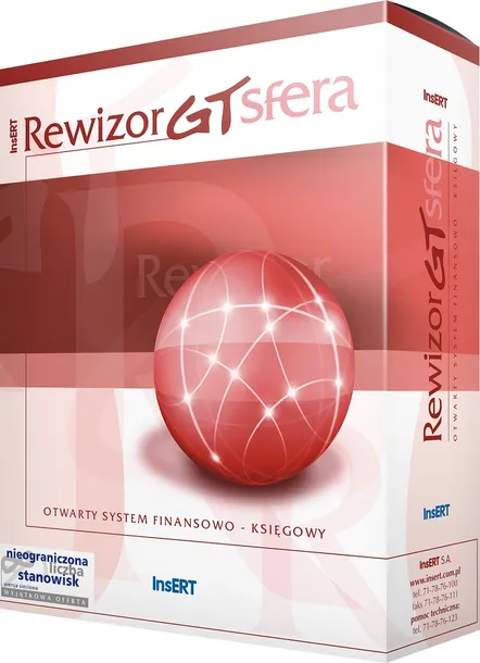Rewizor GT Sfera to część składowa otwartego systemu InsERT GT Sfera zawierającego program do obsługi sprzedaży Subiekt GT Sfera oraz program kadrowo-płacowy Gratyfikant GT Sfera.
