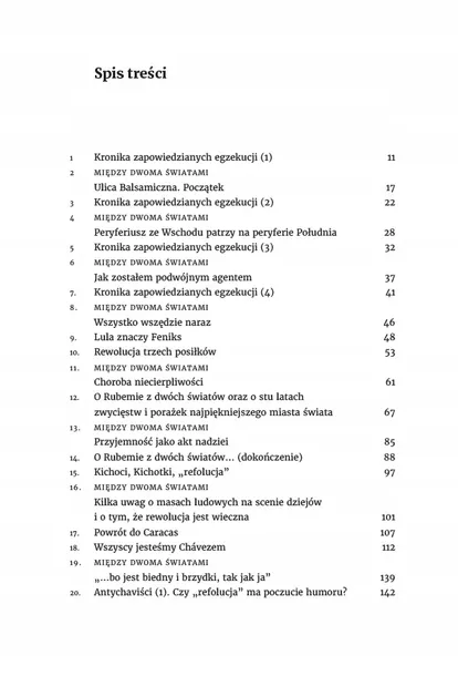 Wielka latynoamerykańska summa Artura Domosławskiego Reportaż totalny. Dwadzieścia lat po premierze kultowej Gorączki latynoamerykańskiej Artur Domosławski – już jako uznany pisarz z ogromnym dorobkiem (m.in. Kapuściński non-fiction, Śmierć w Amazonii, Wykluczeni, Wygnaniec. 21 scen z życia Zygmunta Baumana) – wraca do spraw, które stały się jego znakiem rozpoznawczym, oraz miejsc, z których przed laty wyruszał w swoją pisarską podróż. Przez ostatnie dwie dekady Ameryka Łacińska przeszła ogromne, czasem wręcz rewolucyjne, zmiany. Zmarł „wieczny” Fidel Castro; zakończyła się wieloletnia wojna domowa w Kolumbii; Brazylia przeżywała swój gwiezdny – a potem mroczny – czas; Wenezuelą, Boliwią i Peru po raz pierwszy w historii rządzili przywódcy będący potomkami rdzennych mieszkańców, a w Chile, Argentynie i Brazylii – po raz pierwszy kobiety… Czy udało się poskromić stare demony na kontynencie? Czy pojawiły się nowe? Domosławski sprawdza legendy, nie dowierza utartym opiniom, podważa propagandowe mity. Przygląda się marzycielom, idealistkom, naprawiaczom świata; wielkim reformatorskim projektom i małym rewolucjom. Nie zapomina, że zmiany klimatyczne mogą wkrótce przenicować wszystkie dotychczasowe wysiłki i zmagania. Swoją opowieść układa ze świadectw uczestników wydarzeń oraz własnych obserwacji i doświadczeń. W zapadłych zakątkach, gdzie diabeł mówi dobranoc, wsłuchuje się w opowieści buntowników; w metropoliach odwiedza ludzi władzy, krytyków i rozbitków systemu. Doświadczenia ich wszystkich zderza z naszymi – europejskimi i polskimi – wyobrażeniami i stereotypami. Rewolucja nie ma końca łączy historie pojedynczych ludzi opowiedziane z reporterską wrażliwością na szczegół i panoramiczne obrazy krajów, miast lub całych społeczności namalowane z rozmachem pisarza eseisty. Wielka latynoamerykańska summa autora.