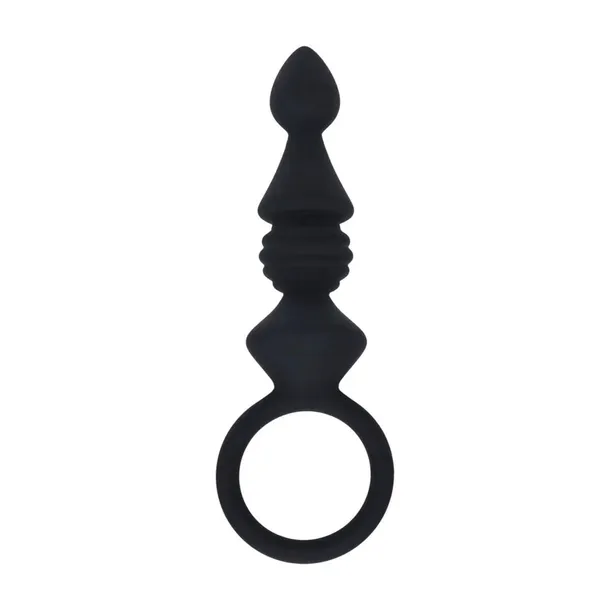 Ribbed Silicone Anal Probe with Loop - Black