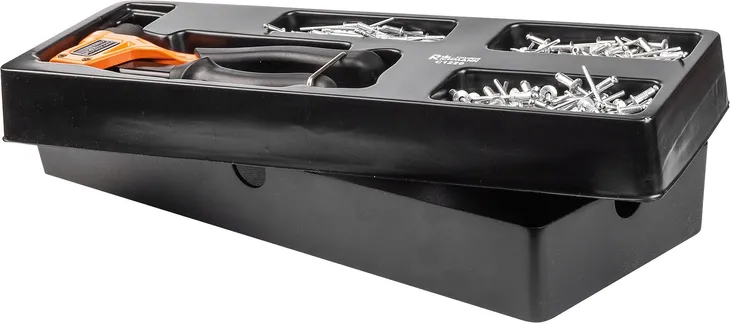 Zestaw nitownica + nity umieszczony we wkładzie do wózka warsztatowego typu A.