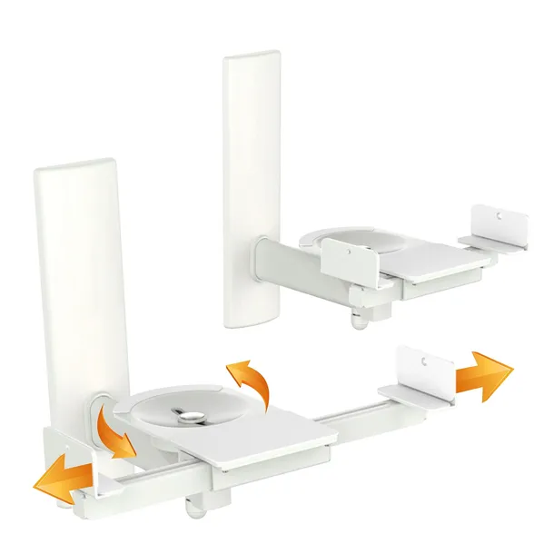 - Funkcje: Obrotowy obszar 360 stopni. Nachylenie +/- 7 stopni. Odległość ściany 273 mm. Wysoka odporność 25 kg. Z materiałem montażowym dla ścian betonowych. Szerokość skrzynki głośnej 135-280 mm