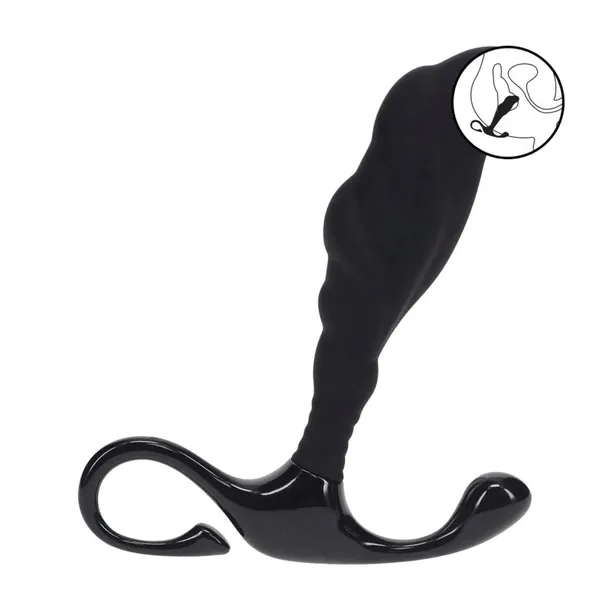 Rippled with Hard Loop Silicone Prostate Massager - S - Black