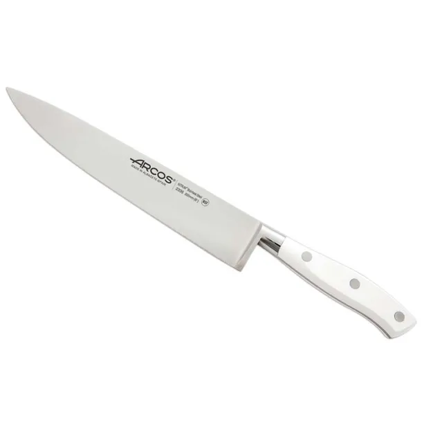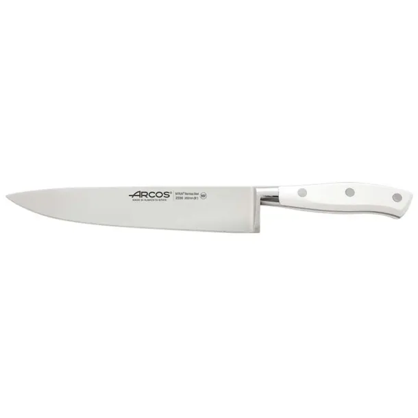 Nóż szefa kuchni z serii Riviera White Dane: długość: 200mm ostrze NITRUM/li> uchwyt polioksymetylen (POM) NITRUMjest wzbogaconą formułą stali nierdzewnej i azotu, która jest przyjazna dla środowiska. Z dowiedzioną twardością, siłą cięcia i wytrzymałością. NITRUMwyróżnia się zdecydowanie pośród konkurencyjnych produktów. Noże z NITRUM spełnią wymagania nawet najbardziej zaawansowanych użytkowników. ECO- friendly Proces powstawania NITRUMjest przyjazny dla środowiska. Azot jest dostępny w atmosferze i dzięki wzbogaceniu stali nierdzewnej o ten pierwiastek NITRUMnie ma negatywnego wpływu na powietrze, wodę i glebę.