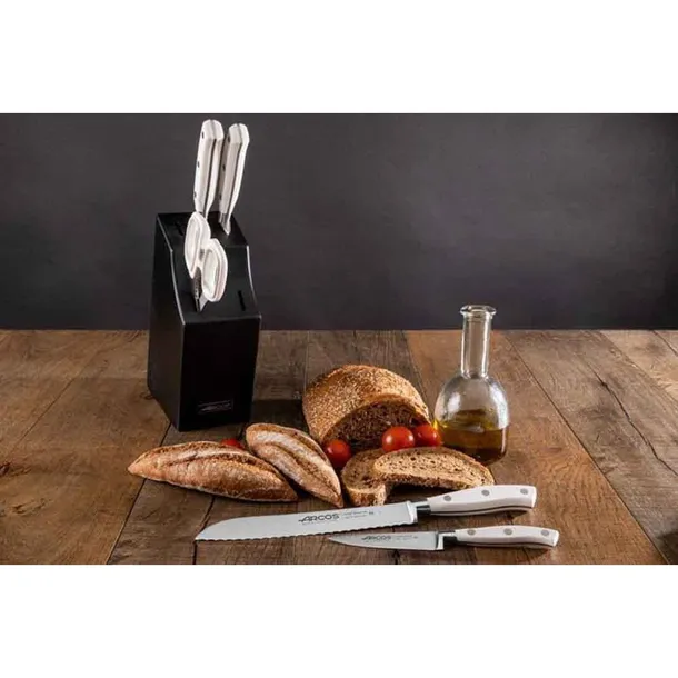Ostrze: wyprodukowane z jednego kawałka kutej stali nierdzewnej NITRUM®. Wyjątkowa, wytrzymała stal o wysokiej wydajności. Uchwyt: na uwagę zasługuje biały uchwyt, kształt, który stanowi elegancka skuwka w stylu francuskim. . Jej wyrafinowane i wysoce odporne na rdzę wykończenie sprawia, że jest główną atrakcją kolekcji. Większy komfort użytkownika.