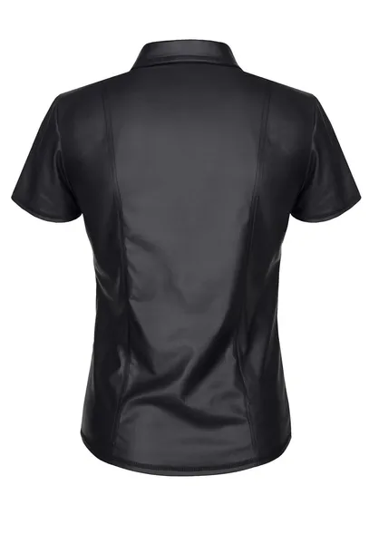 Klasyczna koszulka polo w nowoczesnym wydaniu , która łączy elegancję z wyrazistym stylem. Wykonana z czarnego, elastycznego wetlooku , doskonale dopasowuje się do sylwetki. Z przodu pięknie podkreśla kształt klatki piersiowej , nadając całości dynamicznego charakteru. Z tyłu zastosowano pionowe przeszycia , które optycznie poszerzają plecy i podkreślają wcięcie w talii. Styl uzupełniają ozdobne przeszycia na dole koszulki oraz rękawkach . Na ramieniu znajduje się charakterystyczna naszywka z czerwonej Alcantary z logo RFP. Model doskonale komponuje się ze spodniami RMVincenzo001, tworząc spójny i dopracowany zestaw.