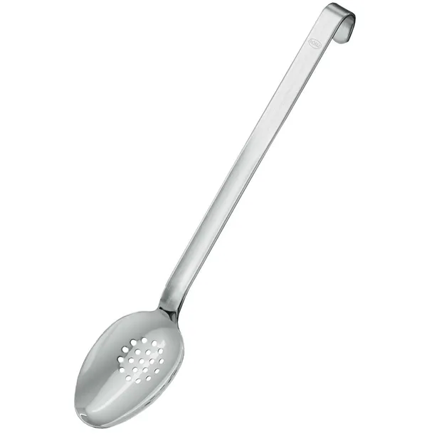 Płyny lub tłuszcz łatwo spływają przez perforację w łyżce, a dzięki zaokrąglonym krawędziom rączki łyżka dobrze i wygodnie leży w dłoni.