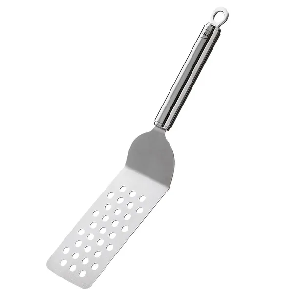 Kątowe ostrze umożliwia łatwe wyjmowanie z patelni, foremek lub blach do pieczenia.