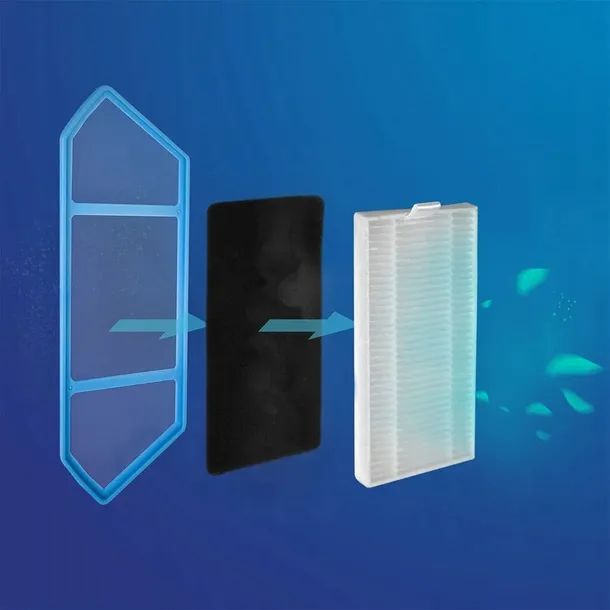 Nowoczesna technologia oczyszczania z filtrem HEPA 13 eliminuje 99,97% bardzo drobnych cząsteczek o wielkości zaledwie 0,3 mikrona, takich jak wirusy, bakterie, pyłki, kurz i sierść zwierząt.
