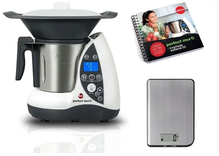 W zestawie znajduje się książka kulinarna "Perfect Mix - Inspiracje wydanie III" z 62 przepisami oraz waga kuchenna Eldom WK310. To nie tylko przydatne, ale i praktyczne dodatki, które ułatwią Ci pracę w kuchni.