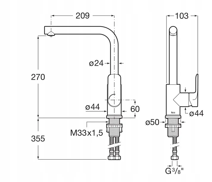 ROCA CALA BATERIA KUCHENNA STOJĄCA CHROM A5A836EC00