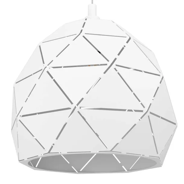 Lampa wisząca ROCCAFORTE składa się z okrągłego, metalowego klosza w kolorze białym z geometrycznym, wyciętym wzorem. Trójkątne wycięcia tworzą fascynującą grę światła i cienia zaraz po włączeniu lampy. Lampa wisząca idealnie pasuje do nowoczesnych i skandynawskich stylów wyposażenia i oferuje specjalne oświetlenie do każdego pomieszczenia - czy to w salonie, czy w jadalni. Lampa wisząca o średnicy 30 cm. Żarówka nie wchodzi w zakres dostawy. Lampa pasuje do każdej żarówki z trzonkiem E27.