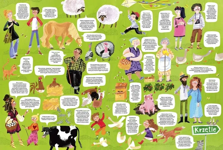 Witajcie w naszym małym gospodarstwie rolnym. Przedstawiamy sympatyczną rodzinę Basi i Piotra Listków. Mają oni dzieci Tymka, Maję i Franek, którzy każdego dnia pomagają swoim rodzicom. Najważniejszą część ich gospodarstwa stanowią zwierzęta . Znajdziemy tam konia, krowę, owce, świnki, indyki, kury, gęsi, kaczki oraz piesa Miśka i dwa koty. Rodzina prowadzi spokojne życie w otoczeniu przyrody i przyjaciół. Rodzinę często odwiedzają pani Malinowska, która wszędzie dojedzie na swoim rowerze, i jej wnuczka Ola.Tam zawsze dużo się dzieje. Po słodki miód, dynię i inne produkty przyjeżdża właścicielka ekologicznego sklepu, a dwa razy w roku, w okolicach sylwestra i na weekend majowy, do Krzętli zjeżdżają letnicy, by odpocząć od miejskiego zgiełku i odetchnąć świeżym powietrzem. Każdy z rodziny pracuje ciężko i ma swoje wyznaczone zadania.