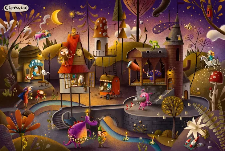 Czy zastanawialiście się kiedyś, jak mogłoby wyglądać życie w Krainie Czarów? Czy mieszkają tam Czerwony Kapturek, czarodziej, wilk, krasnoludki, smok, księżniczki i różne stwory? Co robią przez cały rok? Zapraszamy w fantastyczną podróż, pełną niespodzianek i niezwykłych spotkań z bohaterami z bajek, ale i z Paziem Krotochwilem, istotą o nienagannej elegancji i niewiarygodnym talencie ogrodniczym, Wodnikiem nie z tej ziemi czy Hrabią de von Sal, który przedstawia się jako Największy Mag Świata, ale tak naprawdę nie umie czarować… Rok w Krainie Czarów można oglądać godzinami. Ta niezwykła książka pobudza wyobraźnię, rozwija spostrzegawczość, umiejętność opowiadania, a przede wszystkim gwarantuje świetną zabawę. Maciej Szymanowicz (ur. 1976) – w dzieciństwie kochał rysować, ale studiować postanowił na białostockim wydziale lalkarskim Akademii Teatralnej. Został aktorem lalkowym, ale to zajęcie nie przypadło mu do gustu. Powrócił do miłości z dzieciństwa. Ilustruje, projektuje książki, tworzy plakaty teatralne i gry planszowe. W 2014 wydał autorską książkę Najmniejszy słoń świata. Za ilustracje do książki Asiunia otrzymał Nagrodę Miasta Stołecznego Warszawy (2011), a za Wszystkie moje mamy nagrodę w konkursie Przecinek i Kropka oraz nagrodę Festiwalu Literatury dla Dzieci (2014).