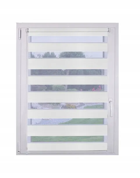 Rolety D&N to połączenie praktyczności i dekoracji. Poziome, równoległe paski materiału, ułożone są naprzemiennie z pasami z cienkiej siatki, co tworzy ozdobny efekt a zarazem pozwala regulować zaciemnienie. Prowadnice żyłkowe w komplecie.