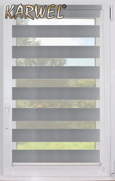 ROLETY OKIENNA MINI DZIEŃ-NOC DN21 Rolety D&N to połączenie praktyczności i dekoracji. Poziome, równoległe paski materiału, ułożone są naprzemiennie z pasami z cienkiej siatki, co tworzy ozdobny efekt a zarazem pozwala regulować zaciemnienie. Prowadnice żyłkowe w komplecie.