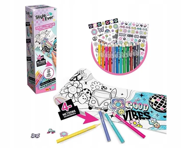 4-metrowa rolka do dekorowania z 3 motywami daje możliwość wyklejania, kolorowania oraz personalizowania swoich projektów.