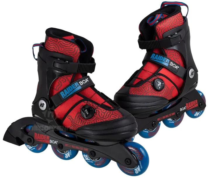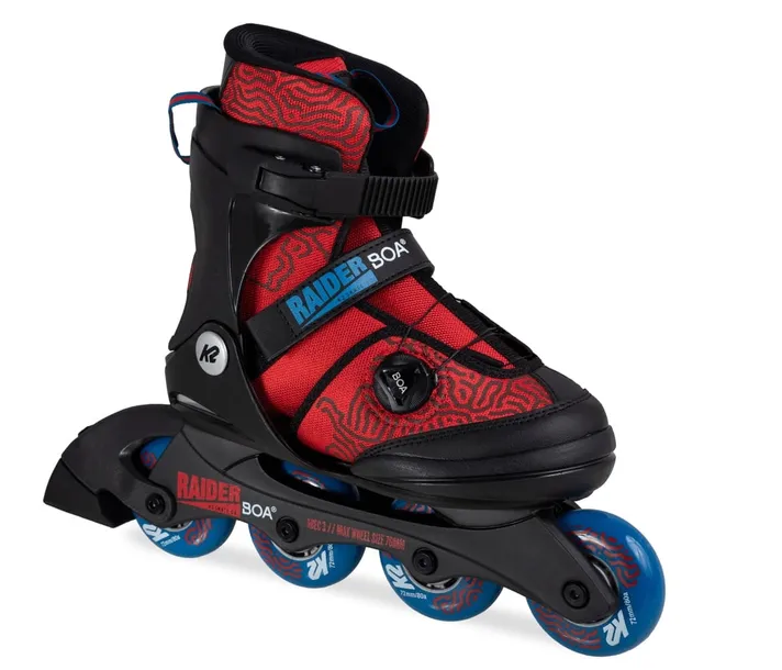 Łyżworolki dziecięce K2 Raider Boa czerwone zostały zaprojektowane tak, aby dzieci z łatwością i radością mogły oddać się frajdzie z jazdy na rolkach. Doskonale sprawdzą się dla młodych rolkarzy, którzy chcą doskonalić się w tym sporcie i planują jeździć na rolkach przez wiele lat. Dzięki unikalnej funkcji Five Size Adjustability, łyżworolki można rozszerzyć, aby rosły wraz ze stopą dziecka.