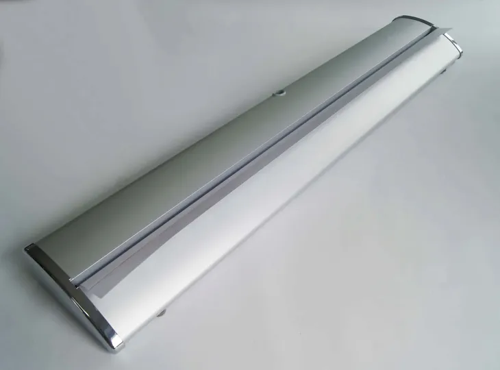 Najmocniejsza na rynku i bardzo elegancka. Opływowy kształt. Nasz kasetka aluminiowa jest bezproblemowa w rozkładaniu i stabilna po rozłożeniu. Materiał blockout z szarym podkładem zapobiega przebijania świata gdy ustawimy roll-up przy oknie. Materiał jest sztywny i się nie wywija, elegacko prezentuje grafikę bez refleksów światła. Wysłany rollup jest kompletny, skręcony i od razu gotowy do ekspozycji. Wymiar roll-upa po rozłożeniu to 200x100 cm. Do zestawu dołączamy torbę z materiału i ekoskóry gratis.