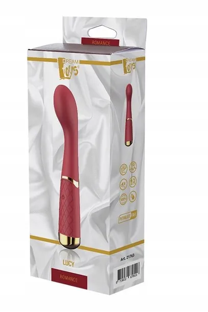 Produkty Romance mają wyraźny rubinowy kolor i luksusowy wygląd. Z wysoką jakością wykonania, jakiej można oczekiwać od luksusowych zabawek Dream Toys.Podobnie jak inne zabawki Romance, wibrator punktu G Lucy jest elegancki i romantyczny na zewnątrz, a wewnątrz pełen technologii. Wibrator Romance G-spot Lucy ma teksturę w kształcie rombu z miękkiego silikonu spożywczego na uchwycie i gładki trzon. Oferuje 3 prędkości i 7 wibrujących rytmów pasji, będąc w pełni wodoodpornym i łatwo ładowanym przez USB. Lekko zakrzywiony kształt Lucy i bulwiasta głowa są idealne do stymulacji punktu G. Obsługa jest łatwa za pomocą jednego przycisku. Wibrator punktu G. Zakrzywiony elastyczny kształt 3 prędkości i 7 wibrujących wzorów pasji Łatwa obsługa jednym przyciskiem Akumulator za pomocą dołączonego kabla USB Wodoodporny