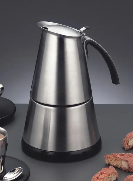Miniekspres do kawy Rommelsbacher EKO 364/E Elpresso to najlepszy warunek do przygotowania oryginalnego włoskiego espresso. Wykonany z wysokiej jakości stali nierdzewnej, jego design już przyciąga wzrok, a ergonomicznie zakrzywiony uchwyt ze stali nierdzewnej z termoizolacyjnym tworzywem sztucznym od wewnątrz zapobiega poparzeniom. Czy to dwie, czy cztery filiżanki espresso: obsługa EKO 364/E Elpresso mini jest prosta i wygodna. Napełnij wodą i espresso, postaw dzbanek na centralnej podstawie, włącz go i gotowe. Gdy tylko espresso będzie gotowe, ekspres EKO 364/E Elpresso mini deLuxe wyłączy się automatycznie.