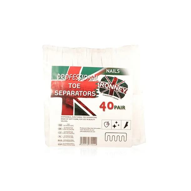 Separatory do pedicure'u Ronney znacznie ułatwiają pracę. Skutecznie oddzielają od siebie palce, dzięki czemu z łatwością pomalujesz paznokcie. Wykonane zostały z miękkiej pianki, nie powodują dyskomfort. Opakowanie zawiera aż 40 par separatorów.