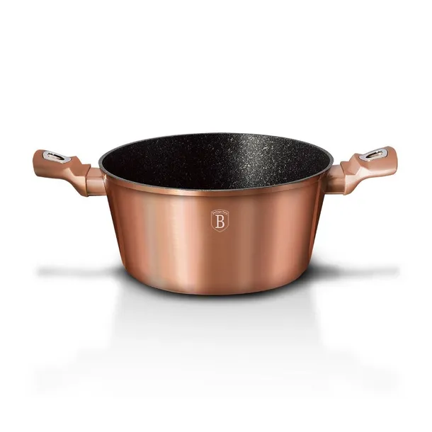 Garnki i akcesoria z serii METALLIC firmy BERLINGER HAUS wykonane są z wysokiej klasy kutego aluminium pokrytego wewnątrz potrójną powłoką granitową (marble) o bardzo wysokim współczynniku twardości. Powłoka zewnętrzna występuje w kilku wersjach kolorystycznych o charakterystycznym metalicznym połysku. Te atrakcyjne i modne naczynia wyposażone są standardowo w uchwyty typu SOFT TOUCH (silikon handle). Przystosowane do wszystkich rodzajów kuchenek: gazowa, elektryczna, ceramiczna, halogenowa, indukcyjna. System TURBO INDUCTION (bardzo szybko nagrzewają się) pozwala zaoszczędzić nawet 35% energii.Wymiary: