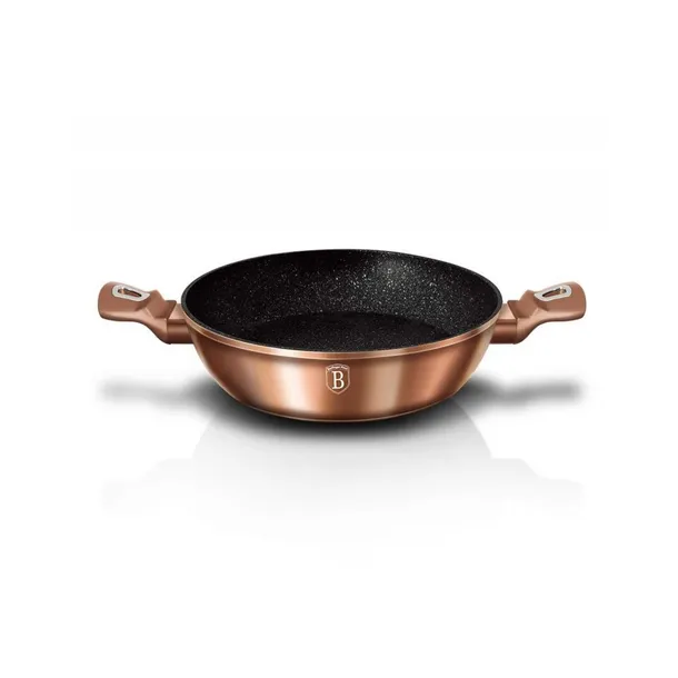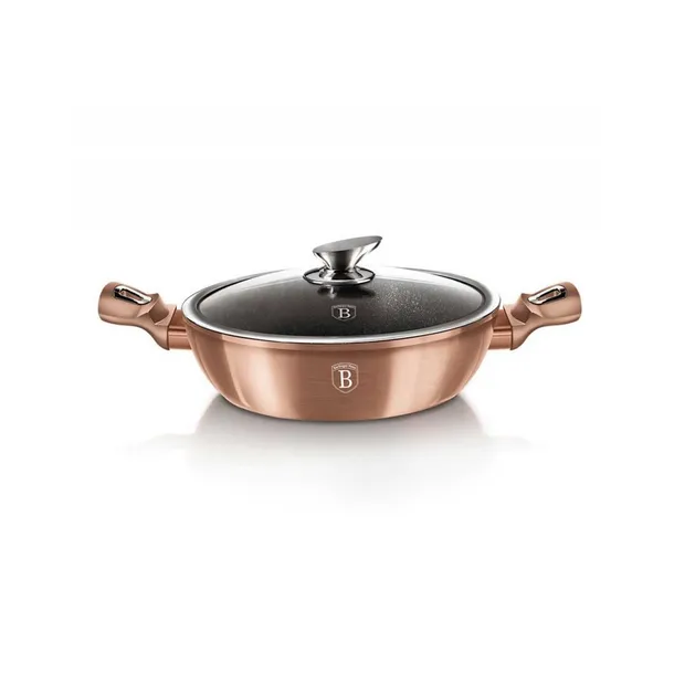 Garnki i akcesoria z serii METALLIC firmy BERLINGER HAUS wykonane są z wysokiej klasy kutego aluminium pokrytego wewnątrz potrójną powłoką granitową (marble) o bardzo wysokim współczynniku twardości. Powłoka zewnętrzna występuje w kilku wersjach kolorystycznych o charakterystycznym metalicznym połysku. Te atrakcyjne i modne naczynia wyposażone są standardowo w uchwyty typu SOFT TOUCH (silikon handle). Przystosowane do wszystkich rodzajów kuchenek: gazowa, elektryczna, ceramiczna, halogenowa, indukcyjna. System TURBO INDUCTION (bardzo szybko nagrzewają się) pozwala zaoszczędzić nawet 35% energii.Wymiary: