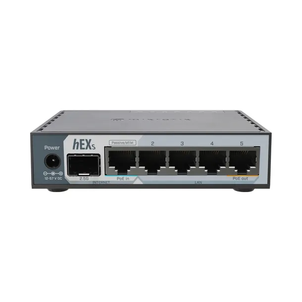 Najważniejsze parametry platformy hEX S to dwurdzeniowy procesor taktowany z częstotliwością 950MHz, 512MB RAM, 5 portów Gigabit Ethernet oraz gniazdo SFP obsługujące prędkość do 2.5 Gigabit. Dostępne jest również gniazdo USB.