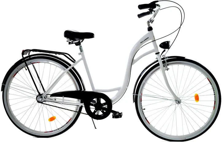 Przedstawiamy rower miejski Dallas City 26" 3spd, idealny towarzysz codziennych przejażdżek po mieście. Zbudowany na stalowej ramie o rozmiarze 17 cali, ten rower łączy w sobie elegancję i funkcjonalność.Wyposażony w stalowy widelec oraz trzy biegi Shimano, umożliwia komfortowe poruszanie się po różnorodnych nawierzchniach. System hamulcowy składa się z przedniego hamulca V-Brake oraz tylnego w piaście, co zapewnia skuteczne zatrzymanie w każdej sytuacji. Jednorzędowa korba oraz suport na łożyskach maszynowych gwarantują płynność jazdy.W rowerze zastosowano tylnią przerzutkę Shimano oraz manetkę biegów Shimano, co umożliwia łatwą zmianę przełożeń. Aluminiowe piasty oraz stożkowe obręcze zapewniają trwałość i lekkość. Opony o rozmiarze 26x1,75 oferują dobrą przyczepność i komfort jazdy.Dodatkowo, rower został wyposażony w stalową kierownicę oraz wspornik kierownicy, co zwiększa jego stabilność. Komfortowe siodło na sprężynie oraz kulkowe pedały sprawiają, że każda przejażdżka będzie przyjemnością. W zestawie znajdziesz także błotniki, bagażnik, podpórkę, osłonę łańcucha, oświetlenie LED oraz dzwonek, co czyni ten model pełnoprawnym doskonałym rozwiązaniem dla miejskich rowerzystów.Rower miejski Dallas City 26" 3spd to idealny wybór dla tych, którzy cenią sobie komfort, styl i niezawodność w codziennym użytkowaniu.