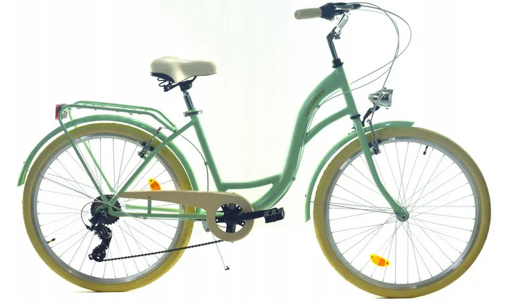Rower Dallas City 26" 7spd to idealne rozwiązanie dla miejskich entuzjastów jazdy na rowerze. Solidna stalowa rama o rozmiarze 17” gwarantuje wytrzymałość i stabilność, co sprawia, że jest to doskonały wybór do codziennych dojazdów. Dzięki wysokiej jakości stalowemu widelcowi, rower oferuje komfortową jazdę nawet po nierównych nawierzchniach.Wyposażony w 7-biegową przerzutkę Shimano, rower umożliwia łatwe dostosowanie do różnych warunków jazdy, a manetka biegów również od renomowanej marki Shimano zapewnia płynne zmiany. Przedni i tylny hamulec V-Brake skutecznie zapewnia bezpieczeństwo podczas hamowania, a aluminiowe piasty oraz stożkowe obręcze przyczyniają się do niskiej wagi i zwiększonej efektywności jazdy.Opony o rozmiarze 26x1,75 oferują dobrą przyczepność, co czyni rower idealnym towarzyszem na miejskich ulicach. Komfortowe siedzenie na sprężynie i stalowa kierownica sprawiają, że każda podróż jest przyjemnością. Rower wyposażony jest również w praktyczne akcesoria, takie jak błotniki, bagażnik, podpórka, osłona łańcucha oraz oświetlenie LED, co znacząco zwiększa jego funkcjonalność. Dodatkowo, dzwonek pozwoli na bezpieczne poruszanie się w ruchu miejskim.Rower Dallas City 26" 7spd to doskonały wybór dla tych, którzy cenią sobie nie tylko wygodę, ale także styl podczas jazdy po mieście. Zainwestuj w jakość i komfort – wybierz rower, który spełni Twoje oczekiwania.