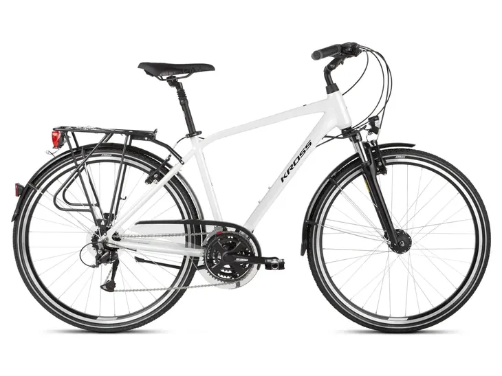 Jeśli lubisz jeździć na rowerze i szukasz komfortowej maszyny na dojazdy do pracy to KROSS Trans 4.0 jest rowerem idealnym dla Ciebie. Sprawdzi się także w trakcie weekendowych wycieczek czy na długich wyprawach. Dzięki specjalnie wzmocnionemu bagażnikowi na KROSS Trans 4.0 przewieziesz nawet ciężki bagaż. Nie straszna ci będzie również pogoda, bo nasz system pełnych błotników ochroni twoją odzież przed błotem tryskającym spod opon.W KROSS Trans 4 . 0 zamontowano wysokiej jakości hamulce V-brake, które zapewnią ci dużą siłę hamowania zarówno na asfalcie, jak i na leśnej ścieżce. Opony Mitas Gripper o szerokości 1,6” pozwalają na stosowanie roweru w praktycznie każdych warunkach atmosferycznych, a także zapewnią długą eksploatację. Ponadto wyposażony jest on w wysokiej jakości napęd składający się z komponentów Shimano. Dzięki zastosowaniu tylnej przerzutki Shimano Acera oraz przedniej Tourney udało się uzyskać aż 21 przełożeń. Ułatwią one pokonywanie stromych wzniesień oraz rozwinięcie wysokiej prędkości na płaskich odcinkach drogi.