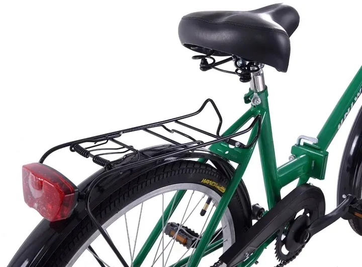 Ergonomiczne akcesoria, takie jak wygodne siodło na sprężynie, kierownica i wspornik stalowy, gwarantują najwyższy poziom komfortu podczas jazdy. Natomiast stylowe wykończenie, w tym błotniki, bagażnik, osłona łańcucha i oświetlenie LED, dodają temu rowerowi niepowtarzalnego uroku.