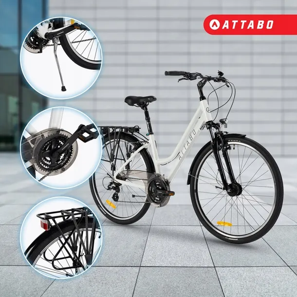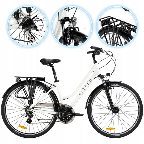 Rower trekkingowy damski ATTABO Trekking został wykonany z najwyższej jakości materiałów, gwarantujących stabilność, trwałość i bezpieczeństwo. Lekka, a zarazem wytrzymała rama wykonana z aluminium 6061 zapewnia doskonałą ergonomię, równowagę i lekkość manewrowania.