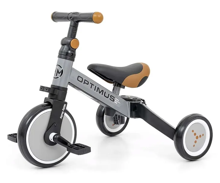 Optimus został zaprojektowany, aby stać się jednym z najlepszych wyborów na pierwszy pojazd twojego dziecka. Dzięki stabilnej trójkołowej konstrukcji zapewnia dziecku odpowiedni poziom bezpieczeństwa i ułatwia zdobywanie nowych umiejętności. Kiedy dziecko ma już opanowane podstawy jazdy, możemy dodać pedały lub zmienić go w klasyczny rowerek biegowy.
