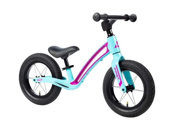 Rower biegowy First od firmy Karbon posiada lekką i stałą ramę magnezową ramę oraz siodełko nastawne, które umożliwia przystosowanie odpychacza do wzrostu dziecka. Kółka 12" i dętkowe pompowane opony tłumią uderzenia, dzięki czemu jazda jest bardziej komfortowa, a antypoślizgowy bieżnik opon bezpiecznie sprawdza się w każdym terenie.