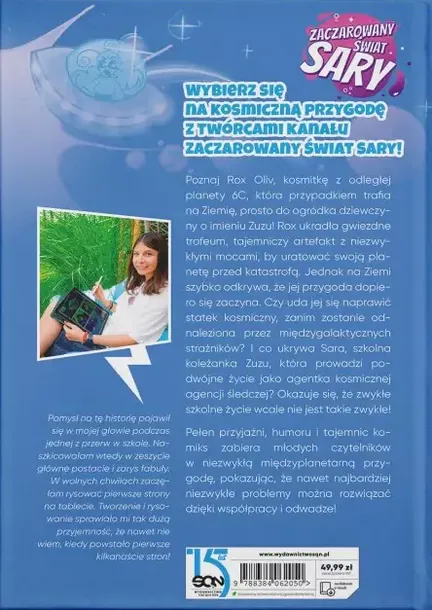 Wybierz się na kosmiczną przygodę z twórcami kanału Zaczarowany Świat Sary! Poznaj Rox Oliv, kosmitkę z odległej planety 6c, która przypadkiem trafia na Ziemię, prosto do ogródka dziewczyny o imieniu Zuzu! Rox ukradła gwiezdne trofeum, tajemniczy artefakt z niezwykłymi mocami, by uratować swoją planetę przed katastrofą. Jednak na Ziemi szybko odkrywa, że jej przygoda dopiero się zaczyna. Czy uda jej się naprawić statek kosmiczny, zanim zostanie odnaleziona przez międzygalaktycznych strażników? I co ukrywa Sara, szkolna koleżanka Zuzu, która prowadzi podwójne życie jako agentka kosmicznej agencji śledczej? Okazuje się, że zwykłe szkolne życie wcale nie jest takie zwykłe! Pełen przyjaźni, humoru i tajemnic komiks zabiera młodych czytelników w niezwykłą międzyplanetarną przygodę, pokazując, że nawet najbardziej niezwykłe problemy można rozwiązać dzięki współpracy i odwadze!