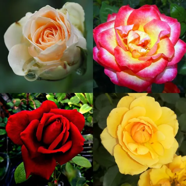 Mix zawiera róże pnące, rabatowe oraz wielkokwiatowe.