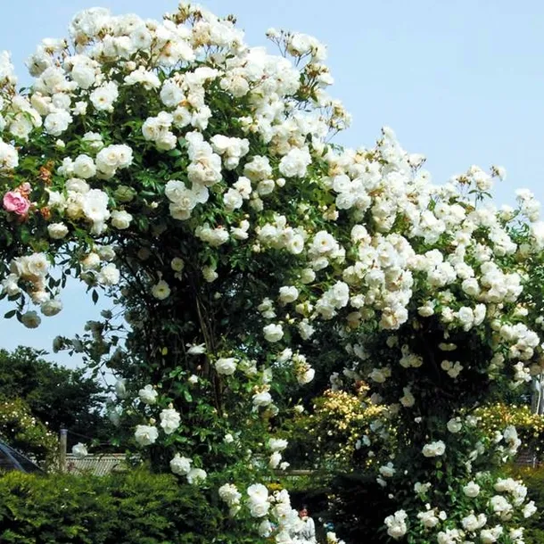 Róże pnące - o długich pędach i obficie kwitnące. Podobnie jak w przypadku róż krzaczastych są odmiany róż pnących kwitnących jednorazowo i róż pnących powtarzających kwitnienie. Róże pnące powtarzające kwitnienie mogą dorastać do 3 m. wysokości, natomiast kwitnące raz w roku osiągają nawet 5-6 metrów. Mają też cieńsze i miękkie pędy. Aby się pięły potrzebują podpór do których trzeba je przypiąć. Podporą mogą być różne konstrukcje: łuki, pergole, kratki, ogrodzenia, szpalery.
