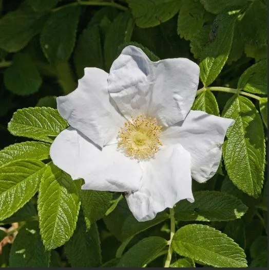 to jedna z najbardziej niezawodnych i wszechstronnych odmian róż, która zachwyca dużymi, pojedynczymi kwiatami o nieskazitelnie białym kolorze. Jest to roślina o intensywnym, słodkim zapachu, który przyciąga do ogrodu liczne pszczoły i motyle. Odmiana ta słynie z ekstremalnej odporności na mróz, suszę, zasolenie gleby oraz choroby grzybowe, co czyni ją rośliną niemal niezniszczalną. Posiada charakterystyczne, pomarszczone, jasnozielone liście, które jesienią przebarwiają się na złoto. Dodatkowym atutem są ogromne, czerwone owoce, które są skarbnicą witaminy C i doskonale nadają się na domowe konfitury oraz nalewki.