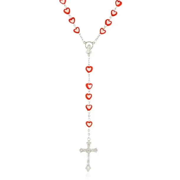 Tradycyjny różaniec wykonany z plastikowych paciorków w kształcie serduszek, połączonych metalowymi łącznikami i zakończony krzyżykiem. Każdy powinien na co dzień być wyposażony w takie oto Narzędzie, jako niezbędnik na dobre i złe chwile. Narzędzie po które można sięgnąć w każdej chwili. Różaniec może być wyjątkowym prezentem z okazji uroczystości religijnych. Specyfikacja produktu: