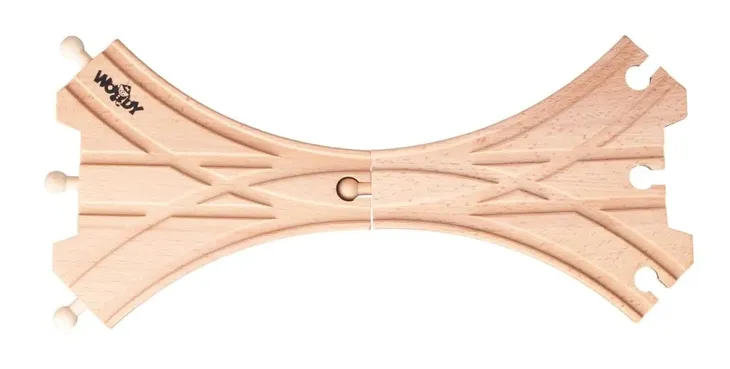 Dwa drewniane elementy po połączeniu tworzą duży rozjazd w kształcie litery "X". To kolejna ciekawa propozycja do rozbudowy Waszych zestawów kolejkowych. Sprawdzi się do tworzenia skrzyżowań i połączy ze sobą aż trzy tory po każdej stronie rozjazdu. To właśnie takie rozjazdy i połączenia sprawiają, że zabawa kolejkami jest tak wciągająca. Dzięki wielorakim częściom Wasze tory będą za każdym razem inne, a dzieci będą miały możliwość tworzenia wciąż nowych kombinacji. Dzięki dwóm częściom możecie utworzyć duży rozjazd w kształcie litery X lub łączyć rozjazdy z torami w inny sposób każdy osobno.