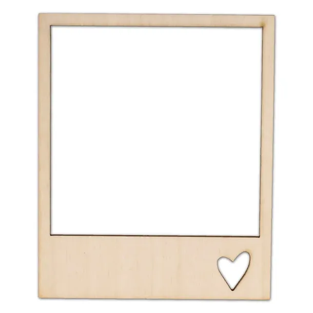 Ramka na zdjęcie polaroidowe do zdobienia metodą decoupage z wyciętym serduszkiem.