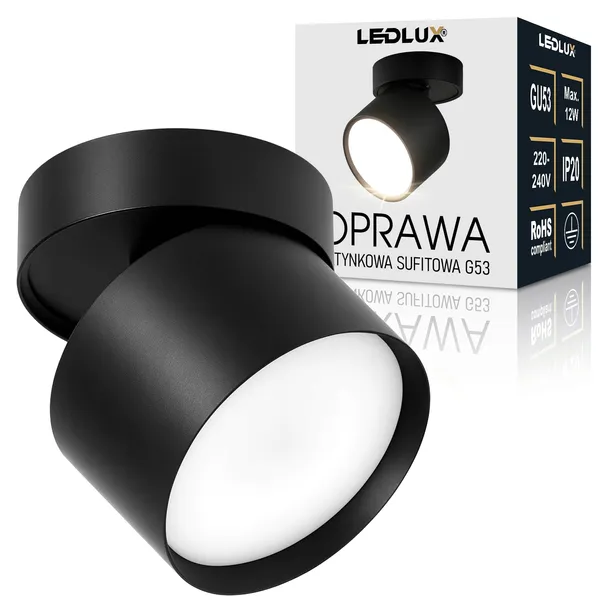 Oprawa sufitowa GX53 została stworzona, aby zapewnić całkowitą swobodę w regulacji oświetlenia. Jej ruchoma budowa pozwala na precyzyjne skierowanie strumienia światła – zarówno pionowo w dół, jak i pod kątem, doskonale akcentując wybrane obszary. Ten produkt łączy minimalizm, praktyczność i styl, będąc idealnym rozwiązaniem do współczesnych aranżacji, a także jako oświetlenie punktowe, na przykład nad blatem, witryną, w przedpokoju lub jako światło kierunkowe w salonie.