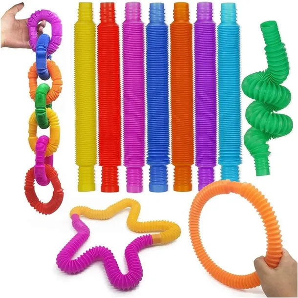 - Wysokiej Jakości Tworzywo: Rurki sensoryczne wykonane z tworzywa sztucznego o przyjemnej fakturze, które można rozciągać, wysuwać i łączyć, czyniąc z nich innowacyjne i atrakcyjne zabawki.