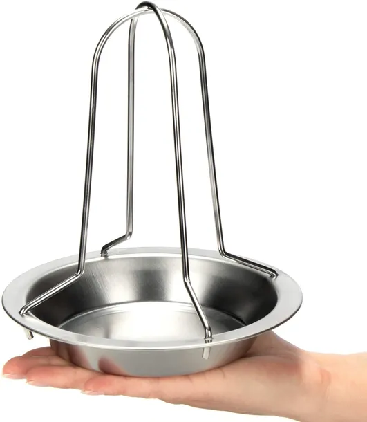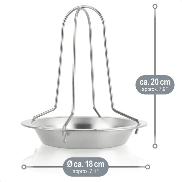 Wymiary stojaka wynoszą około 22 x 17,5 cm. Wykonany jest z wysokiej jakości stali nierdzewnej, co zapewnia trwałość, odporność na wysoką temperaturę oraz łatwość w czyszczeniu. Dostępny w kolorze srebrnym, doskonale sprawdzi się jako niezastąpione narzędzie w każdej kuchni i na każdym grillu.