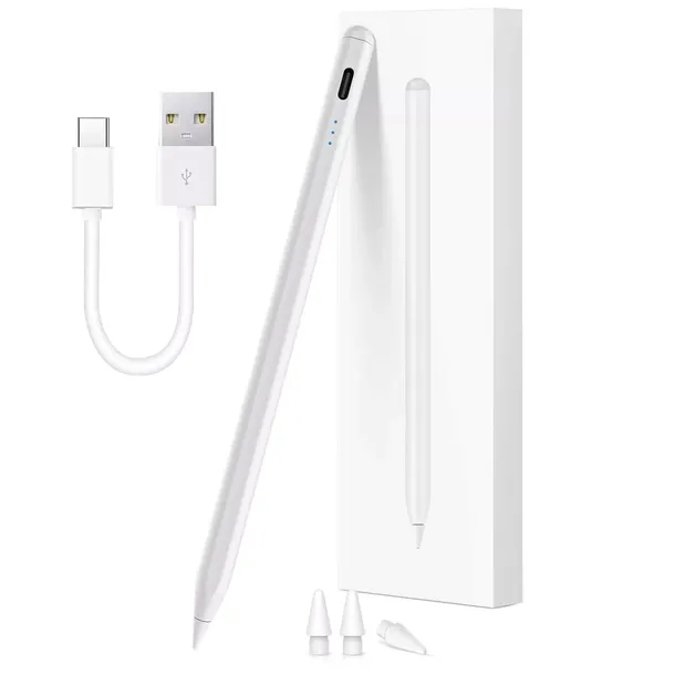 ▶️ Rysik do Apple iPad Alogy Pencil z funkcją Palm Rejection Pressure Sensing Tilt Magnetyczny USB-C + 3 zapasowe końcówki Biały